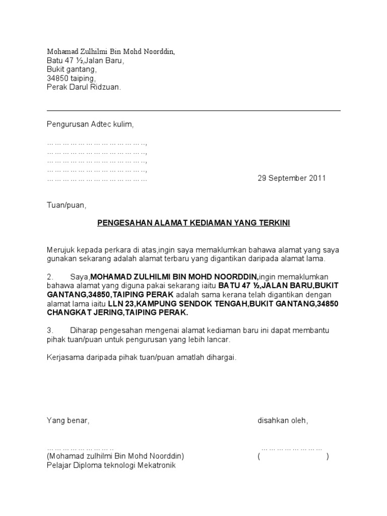Tuan, surat pengesahan bermastautin merujuk kepada perkara diatas dengan segala hormatnya dimaklumkan kepada bahawa saya lokman bin samian no.kad pengenalan: 4.i am malay 5.blood type : Format gambar contoh surat rasmi mastautin terbaik 2019. My family call me una 2.born on 09th october 1993 3. For more information and source, see on this link :